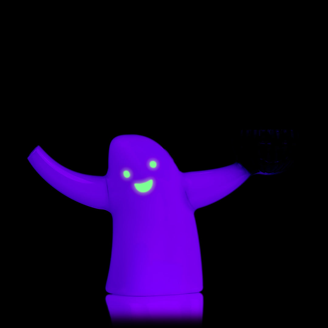 Celebrate spooky season with MJ Arsenal’s 9th Annual Limited Edition Ecto Bubbler, a pocket-friendly piece made from 100% borosilicate glass. Featuring a glow-in-the-dark ghost face, vibrant full-color Ghost & Pumpkin design, and an ergonomically placed carb hole, this handmade bubbler is as festive as it is functional.